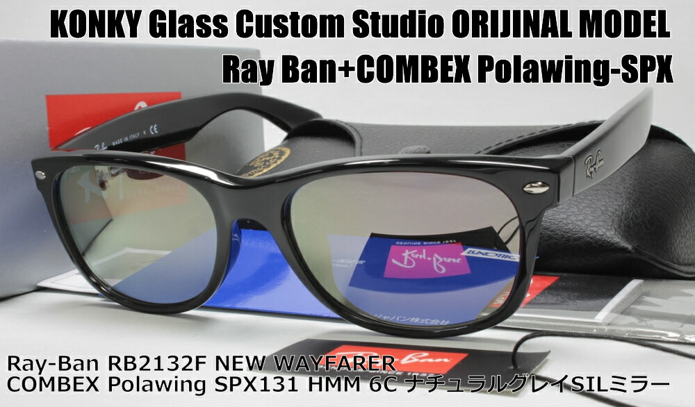 レイバン カスタム偏光サングラス Ray-Ban NEW WAYFARER ウェイファーラ RB2132F 901L 55 / COMBEX MR POLAWING SPX131 HMM NグレイSILミラー