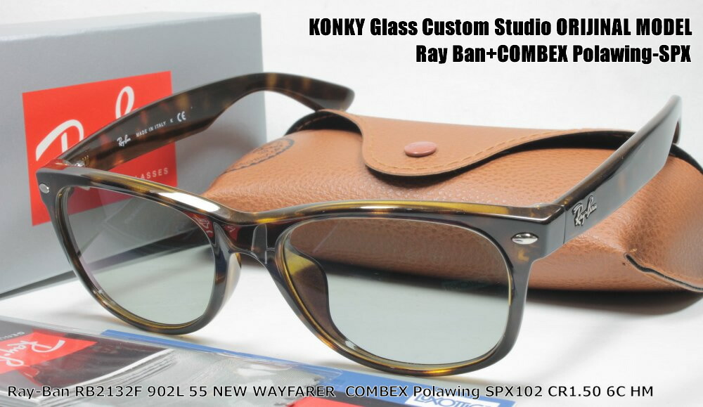 レイバン カスタム偏光サングラス Ray-Ban NEW WAYFARER ウェイファーラ RB2132F 902L 55 / COMBEX MR POLAWING SPX102 (HM)フィールドグレイ