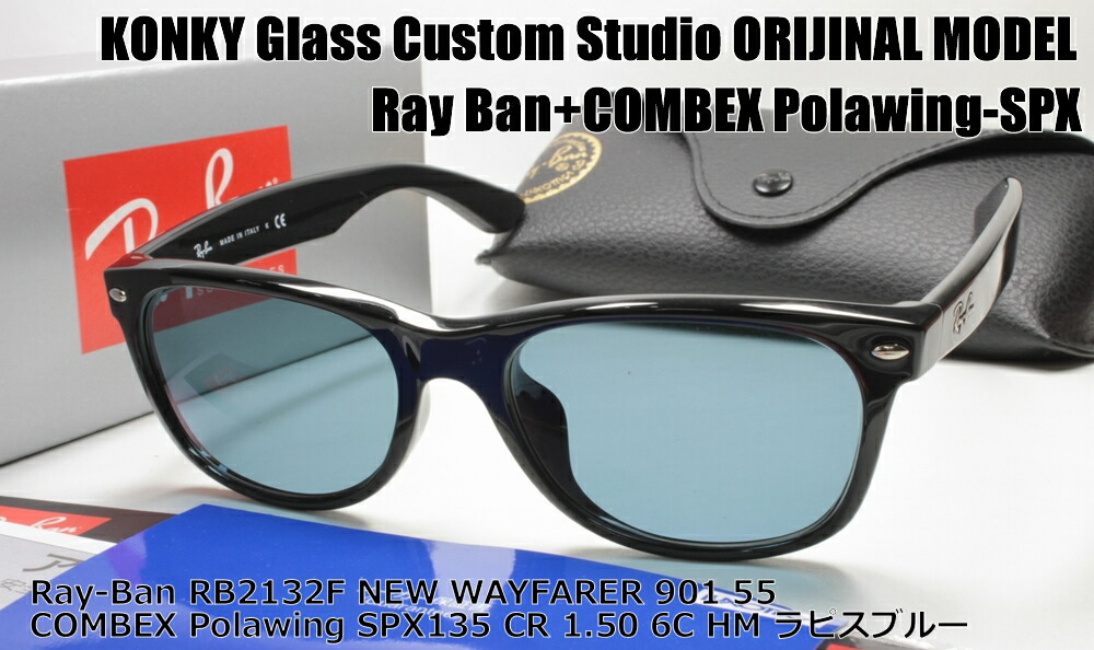 レイバン カスタム偏光サングラス Ray-Ban NEW WAYFARER ウェイファーラ RB2132F 901L 55 / COMBEX MR POLAWING SPX135 (HM)ラピスブルー
